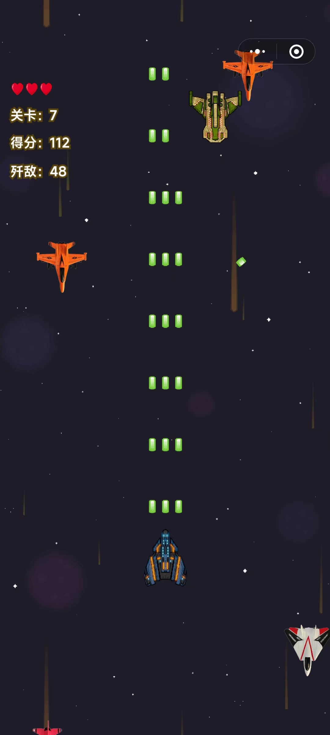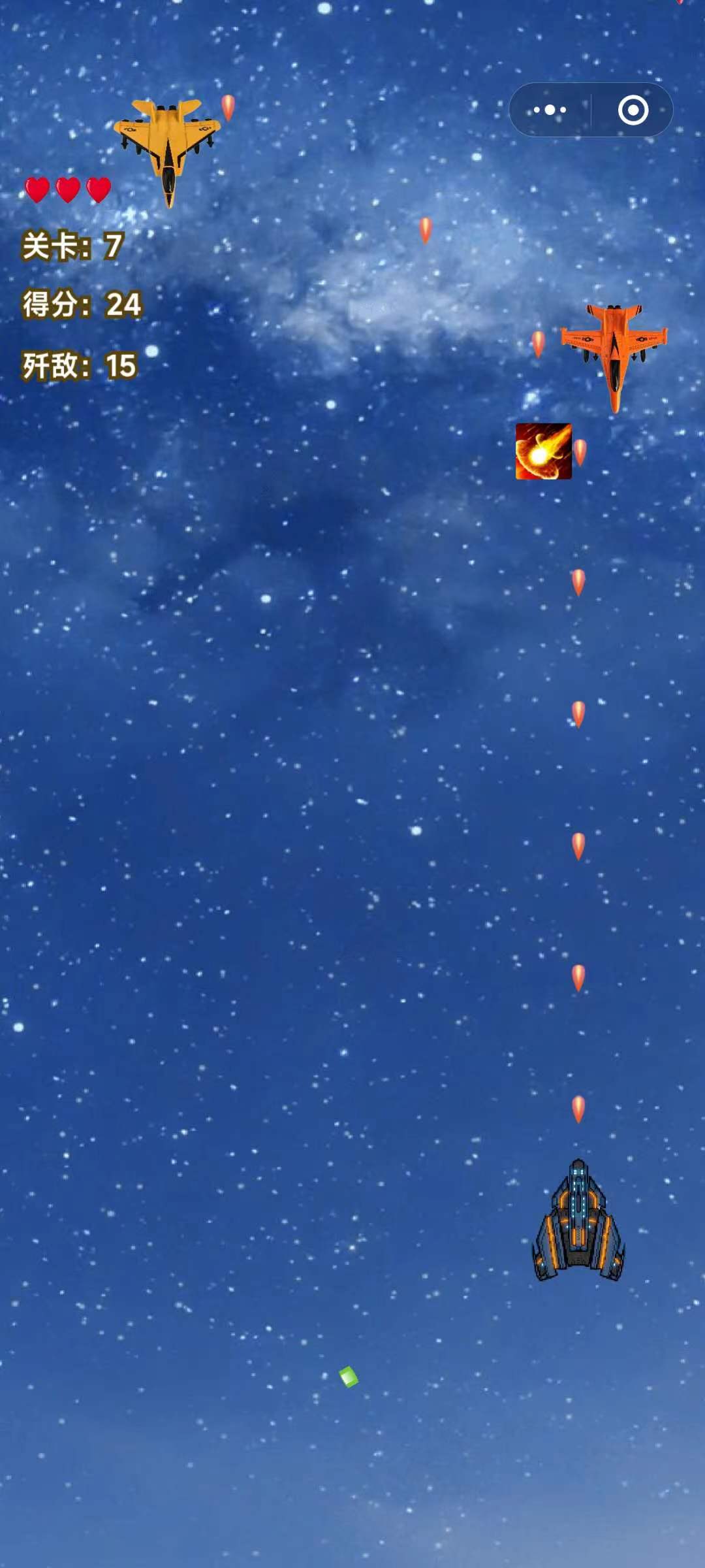 最近试水了一款微信小游戏,由于本人从来没有游戏开发经验,所以本次使用的是:“微信小游戏制作工具”来开发的空战类型的小游戏,画质比不过目前主流的3A画质,但是从游戏素材:战机、敌机、子弹、导弹、背景、音效等全是本人自已创作的。目前游戏也有通用的关卡设计,碰撞算法,得分体系等。